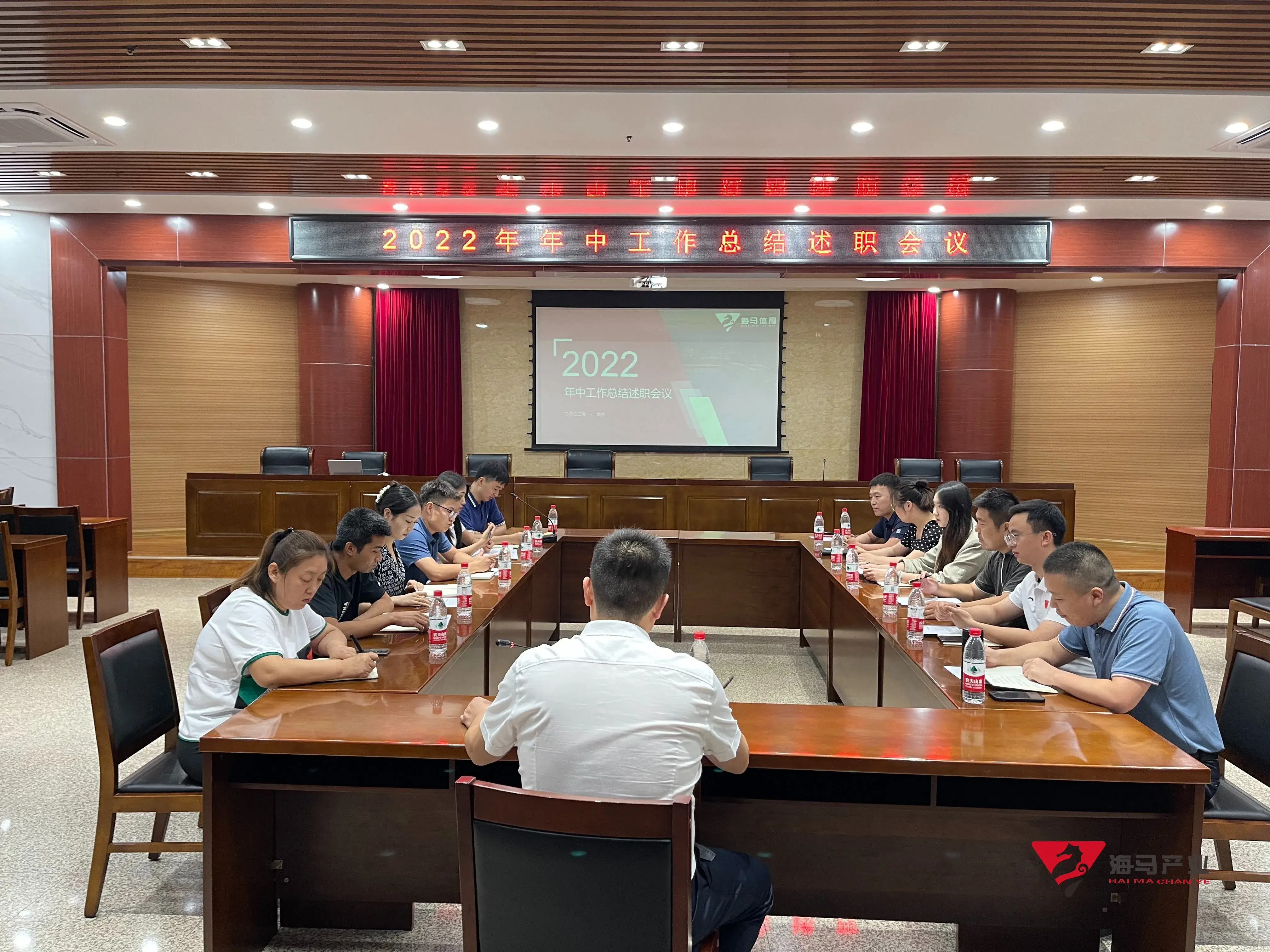 2022年6月29日下午,中欧体育文化产业集团在山东省体育中心二楼会议室召开年中工作总结述职会议,会议对上半年工作成果进行了总结汇报,并就下半年重点工作进行部署。总经理王海民出席了本次会议。会议由综合管理部负责人王永健主持。